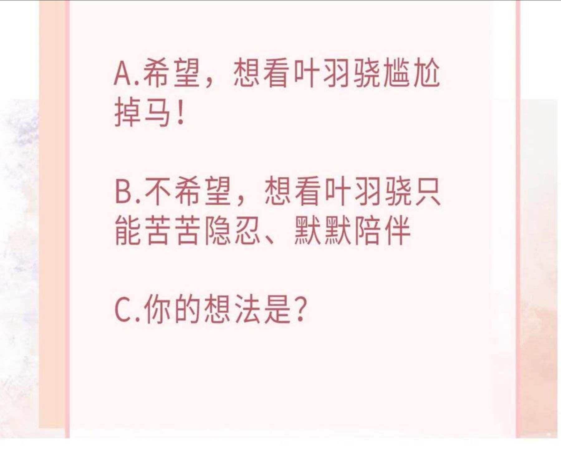 作为一个普通的老实青年,齐子岁在借阅了一本朋友给的漫画之后,意外穿越到了这本后宫漫画的世界之中,而且居然成了里面威胁各位女主的反派?面对手机里满满的照片和一脸委屈不甘地凑过来的女主们,齐子岁应该如何做出选择?