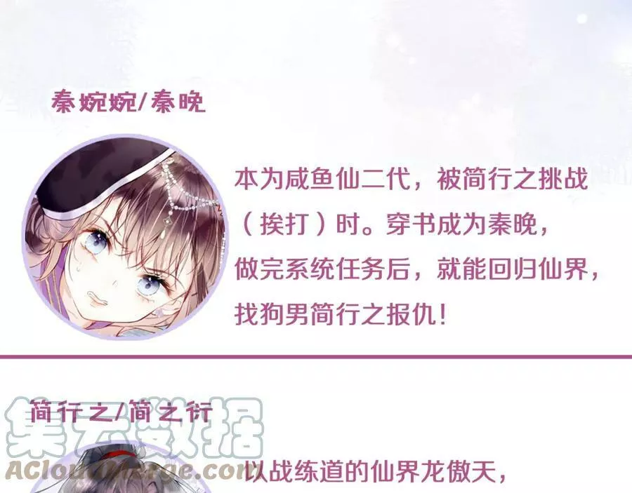 秦婉婉本是修真界最快乐的仙二代,她咸鱼且废,直到有一天,那个以战练道、打遍四海九州的简行之慕名来战,一脚把她踩进了这本名为《最强玛丽苏》的大女主修真文里,成为了里面恶毒女配秦晚,只要走完这个大女主的逆袭道路就可以回去,谁曾想身边说好的衷心男宠竟是这个把她打的到处爬的狗男人简行之?