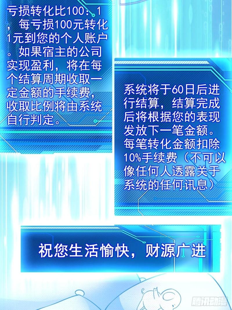 系统在手,天下我有!不就是赔钱吗,赔1000返100,天底下还有比这更简单的事情吗?!可对我来说,这就是很不简单的事情。开网吧网吧赚,开养生会所吧会所赚,开什么赚什么。眼看着公司日渐壮大可自己却一分钱也没捞着......也许我就是传说中的天选之子吧!
