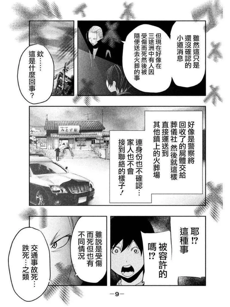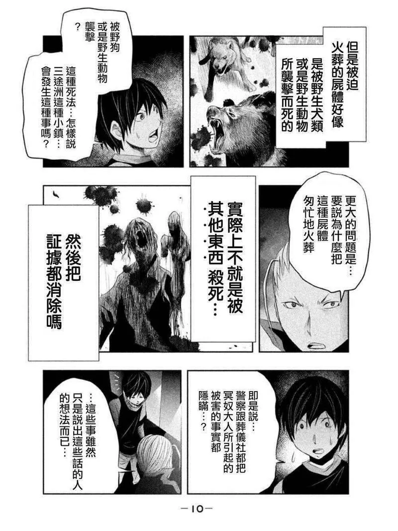 当无火葬场的小镇里钟声鸣响时又名当无火葬场的小镇里锺声鸣响时,类型为恐怖惊悚|推理悬疑的高人气漫画,漫画简介:人口6000人,山沟里的小镇·三途洲镇。这个乡下小镇一到傍晚6点时分就会响起不协和的钟声。要是听到那声音的话,到黎明前都绝对不能出去外面。因为冥奴大人会过来接走你的。可是,时隔10年勇人从东京重返这个...