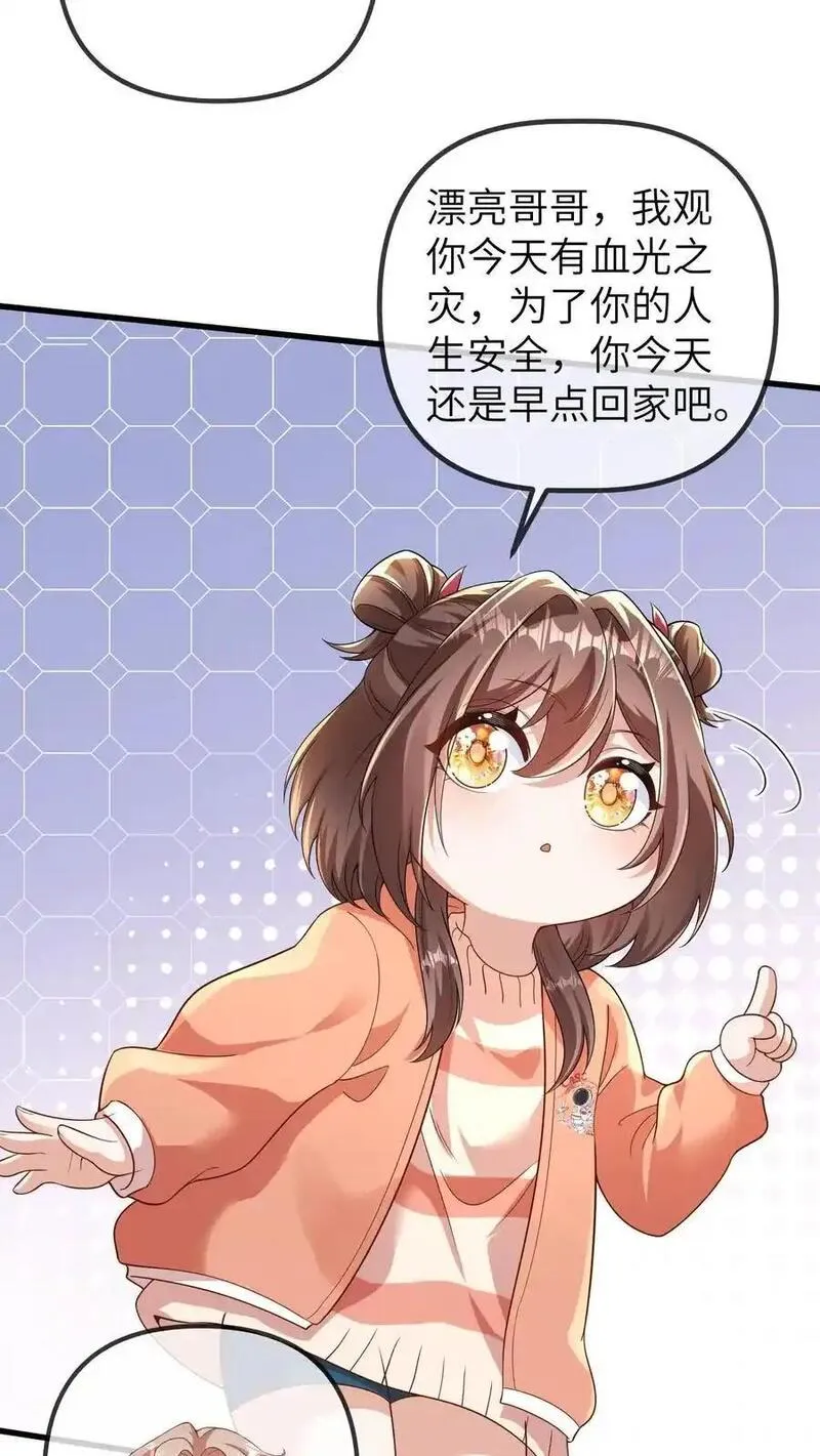团宠小锦鲤三岁半又名,类型为现代言情的高人气漫画,漫画简介:【日更】豪门苏家盼了几十年,终于盼来了一个小闺女。结果小闺女刚出生就丢了,整个苏家都疯了。苏家历尽千辛万苦终于找到了自家崽崽。只见三岁半的小崽崽左手拿一符纸,右手拿一木剑,背后还背着一把比她人还高的七...